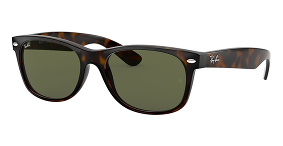 Comfort and style go hand-in-hand in unisex Ray-Ban RB2132 New Wayfarer Classic sunglasses. Sporting a smaller profile than the classic Wayfarer, these glossy, full-rim frames feature rounded edges and thick temples. These classic sunglasses sport a single saddle bridge that balances weight across the nose for added comfort. Deeply curved temple tips help keep the frames in place.