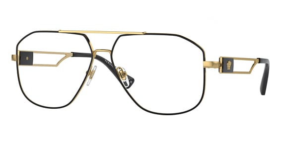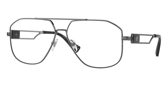 The men's Versace VE1287 eyeglasses embody the unmistakable style of the designer, characterized by boldness and an edgy flair. Crafted in durable and corrosion-resistant metal, these aviator-style frames exude both strength and fashion. The slender temples gently curve inward, ensuring a secure fit that stays in place during your active day. To add a couture touch to these attractive aviator glasses, Versace adorns them with an engraved medallion at the brow end.