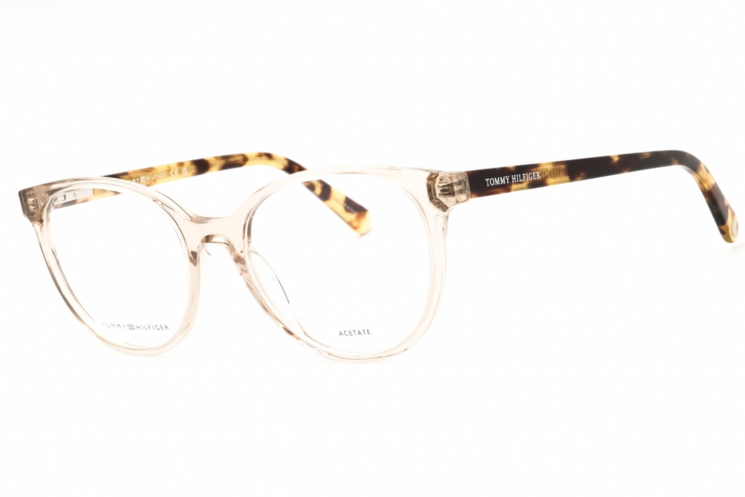 Embrace elegance with these women's eyeglasses from the Tommy Hilfiger TH 1888 collection. Featuring cat-eye frames in acetate, the signature Tommy Hilfiger texture on the metal core is visible on the inside of the temples. Whether in a plain color or a multi-hue motif, glittery or clear, these eyeglasses embody the glamorous femininity that defines both oversize and slender structures. The flexible hinges ensure the comfort of these sophisticated Tommy Hilfiger glasses, making them suitable for anytime, anywhere, to complete truly unique outfits.