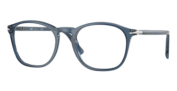 Persol PO3007VM in Transparent Denim Blue. This model features an eye catching shape to complement your facial features.The frame is made from quality materials, balancing weight and strength for your ultimate comfort.