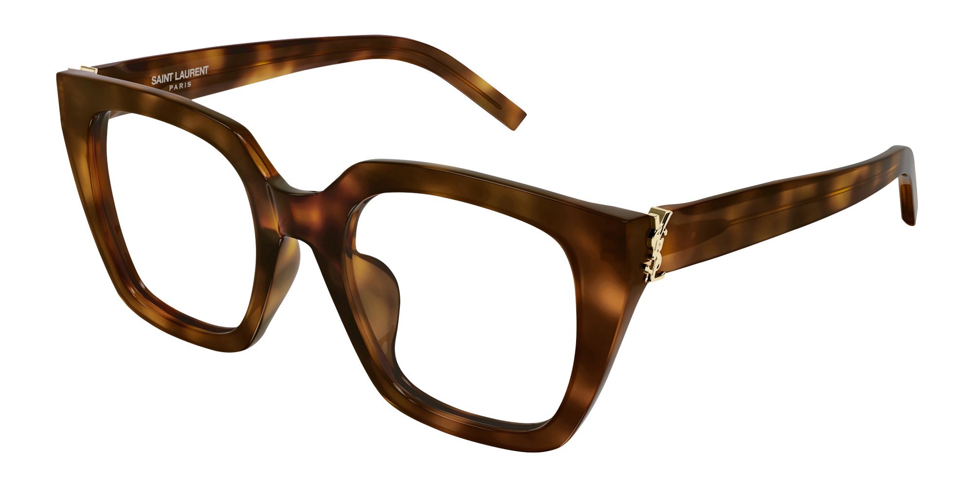 The Saint Laurent SL M143 OPT eyeglasses highlight wide cat-eye styling for a distinctive feminine look. Built in acetate, they are sturdy yet comfortable. Prescription-ready lenses ensure easy customization.