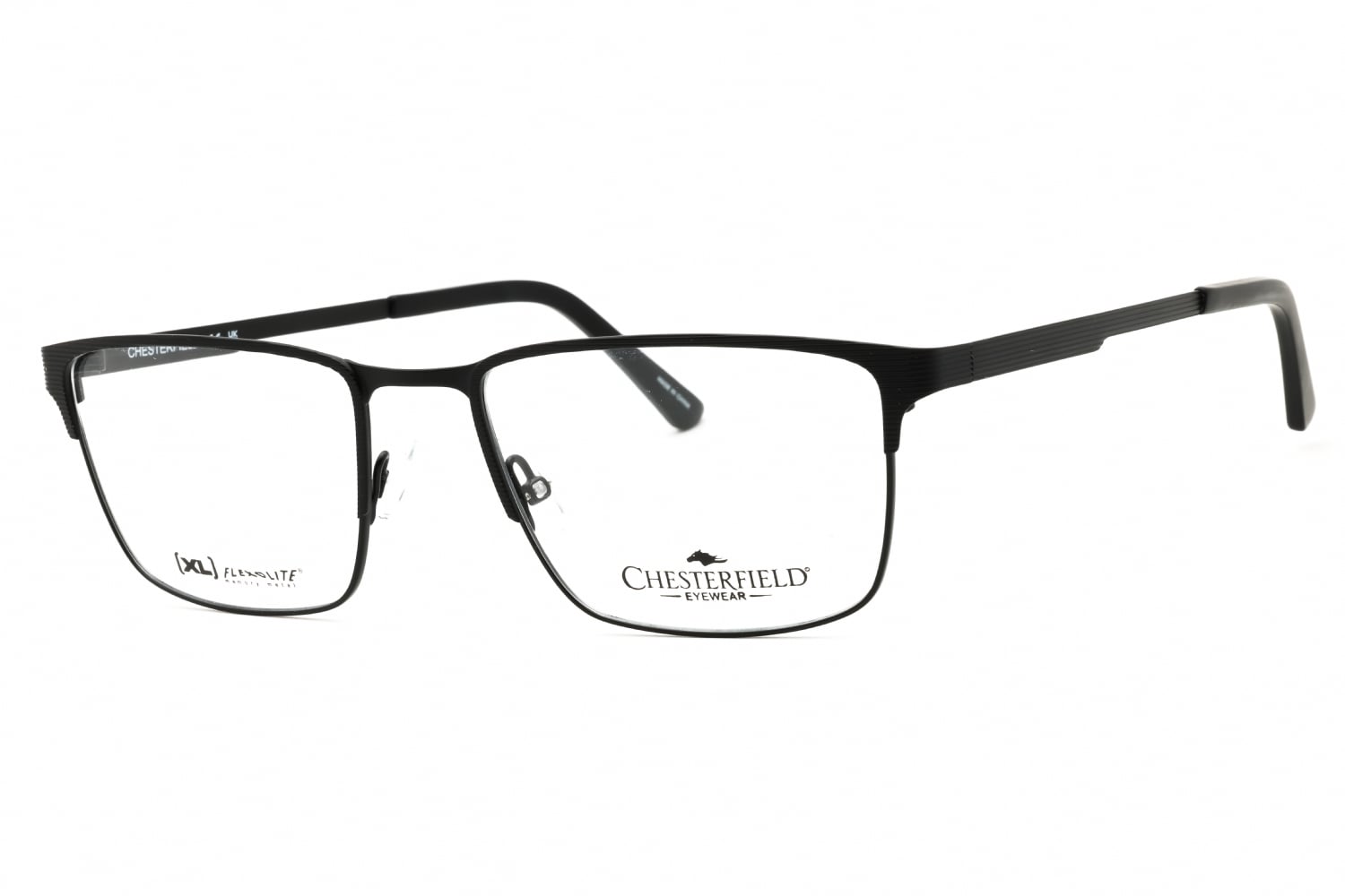 Chesterfield CH 112XL in MTT Black. This model features an eye catching shape to complement your facial features.The frame is made from quality materials, balancing weight and strength for your ultimate comfort.