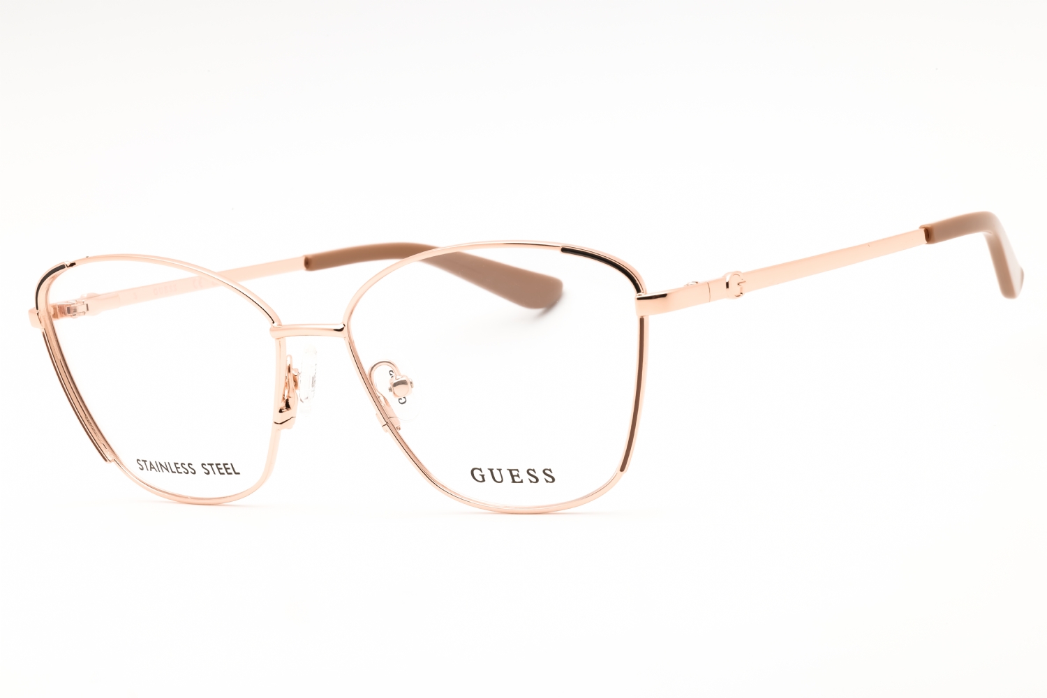 Guess GU50224 in Pale Gold. This model features an eye catching shape to complement your facial features.The frame is made from quality materials, balancing weight and strength for your ultimate comfort.