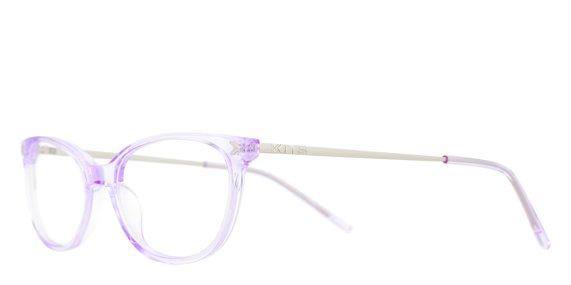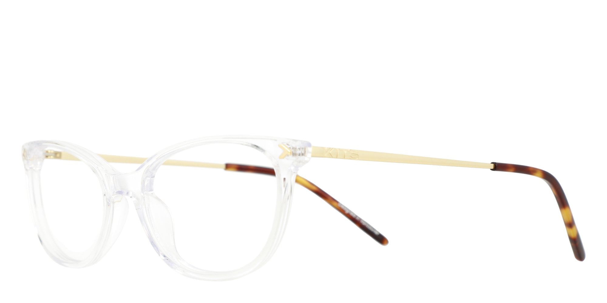 Cateye frame with lightweight acetate front paired with slim stainless steel temples