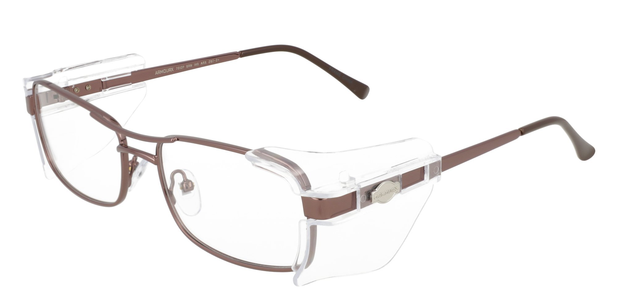 These Armourx 7012 safety eyeglasses offer a refined rectangular profile with ANSI and CSA impact protection for demanding work environments. Crafted with a sturdy metal frame, they are suitable for prescription integration and long-term wear. The balanced design provides both protection and professional aesthetics for the everyday safety wearer. Ideal for industrial or lab applications where compliant performance is essential.