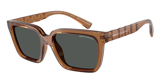 Armani Exchange AX4147S in Shiny Transparent Grey. This model features an eye catching shape to complement your facial features.The frame is made from quality materials, balancing weight and strength for your ultimate comfort.