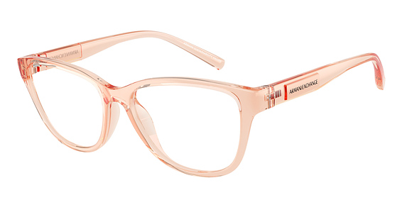 Armani Exchange AX3111U in Shiny Transparent Peach. This model features an eye catching shape to complement your facial features.The frame is made from quality materials, balancing weight and strength for your ultimate comfort.