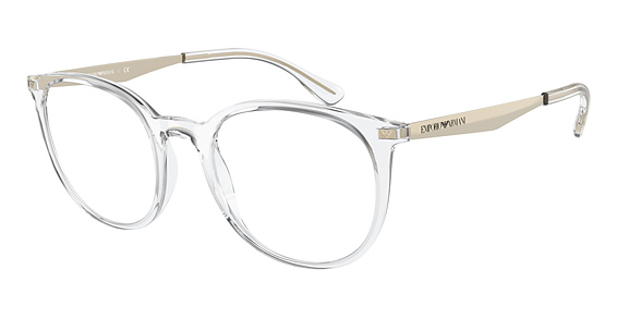 Emporio Armani EA3168 in Shiny Transparent Tundra. This model features an eye catching shape to complement your facial features.The frame is made from quality materials, balancing weight and strength for your ultimate comfort.