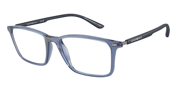 Emporio Armani EA3237 in Shiny Transparent Blue. This model features an eye catching shape to complement your facial features.The frame is made from quality materials, balancing weight and strength for your ultimate comfort.