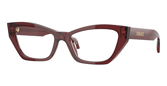 Versace VE3373U in Transparent Bordeaux. This model features an eye catching shape to complement your facial features.The frame is made from quality materials, balancing weight and strength for your ultimate comfort.