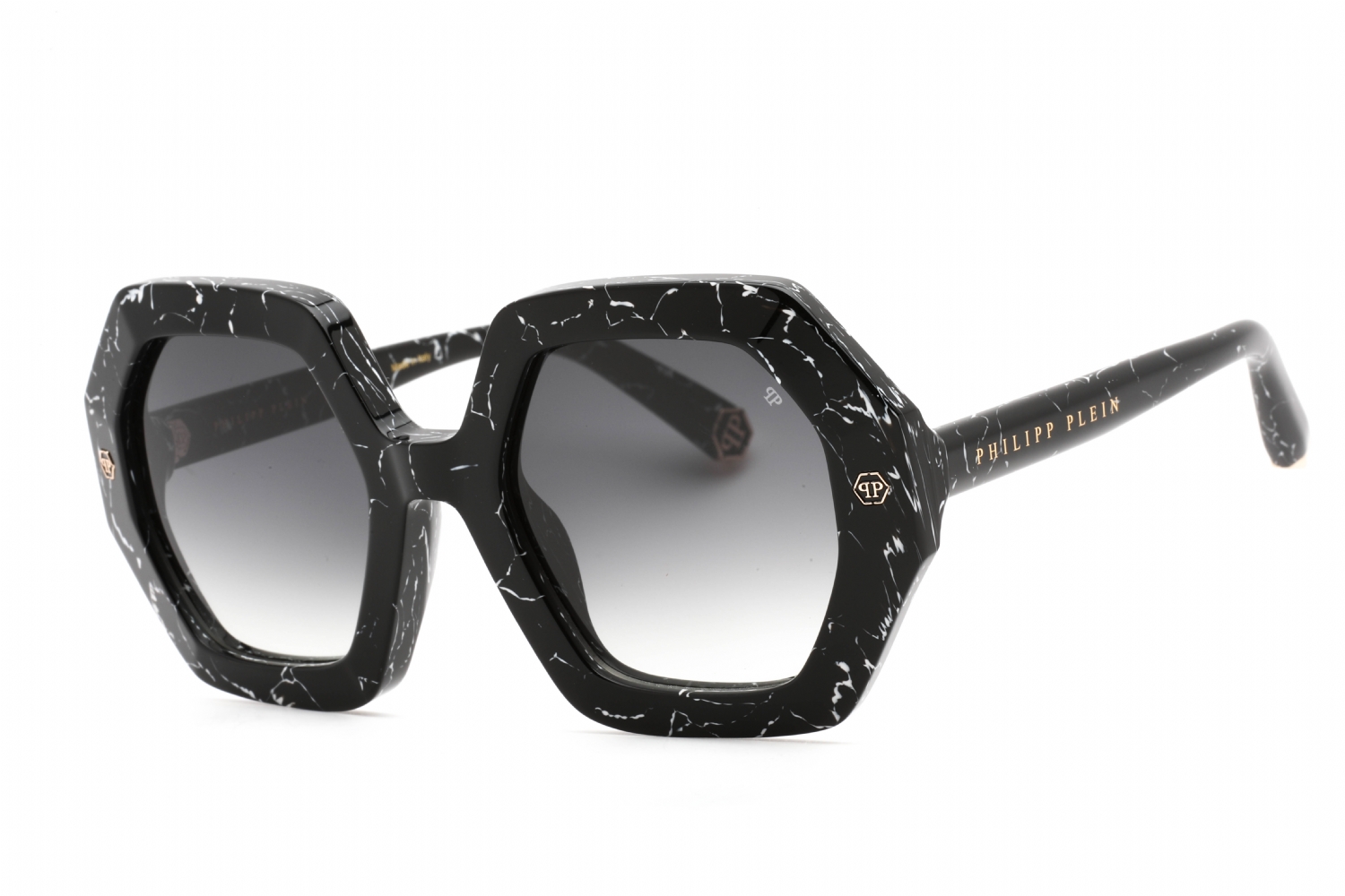 Philipp Plein SPP039M in Marbled Black. This model features an eye catching shape to complement your facial features.The frame is made from quality materials, balancing weight and strength for your ultimate comfort.