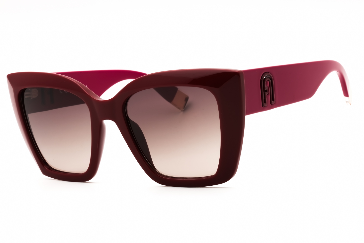 Furla SFU710 in Shiny Burgundy. This model features an eye catching shape to complement your facial features.The frame is made from quality materials, balancing weight and strength for your ultimate comfort.