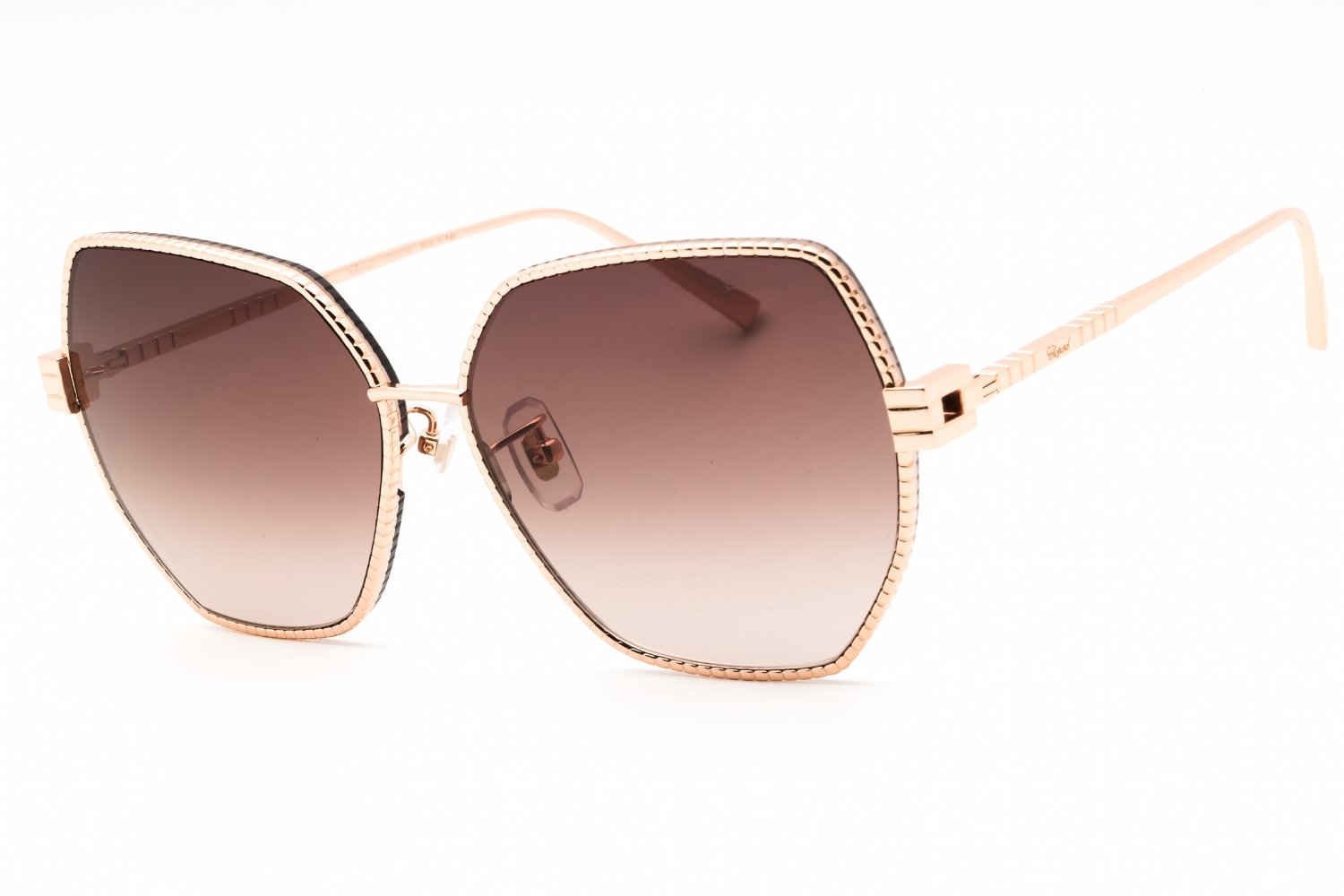 Chopard SCHL28M in Shiny Rose Gold. This model features an eye catching shape to complement your facial features.The frame is made from quality materials, balancing weight and strength for your ultimate comfort.