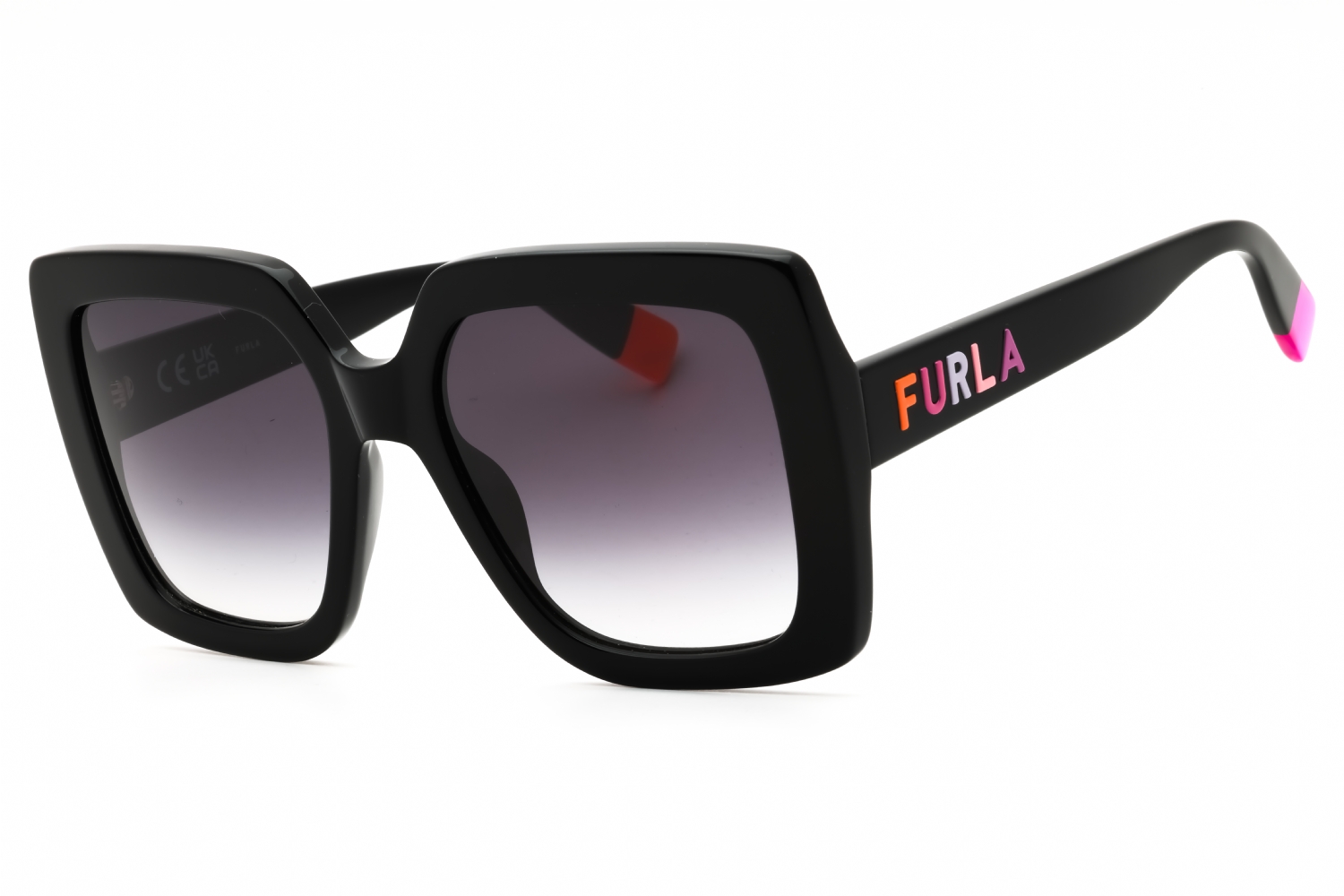 Furla SFU685 in Shiny Black. This model features an eye catching shape to complement your facial features.The frame is made from quality materials, balancing weight and strength for your ultimate comfort.