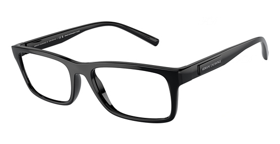 Armani Exchange AX3115 in Shiny Black. This model features an eye catching shape to complement your facial features.The frame is made from quality materials, balancing weight and strength for your ultimate comfort.
