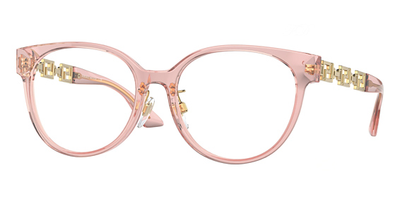 Versace VE3302D in Transparent Pink. This model features an eye catching shape to complement your facial features.The frame is made from quality materials, balancing weight and strength for your ultimate comfort.
