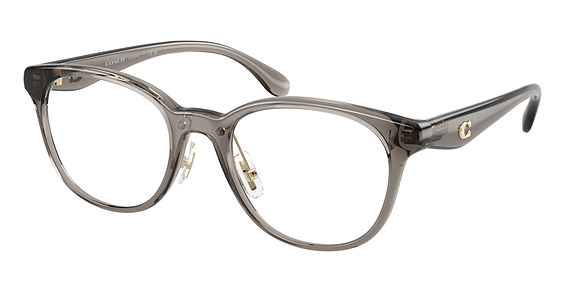 COACH HC6294D in Transparent Light Grey. This model features an eye catching shape to complement your facial features.The frame is made from quality materials, balancing weight and strength for your ultimate comfort.