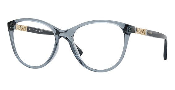 Vogue VO5631B in Transparent Light Blue. This model features an eye catching shape to complement your facial features.The frame is made from quality materials, balancing weight and strength for your ultimate comfort.
